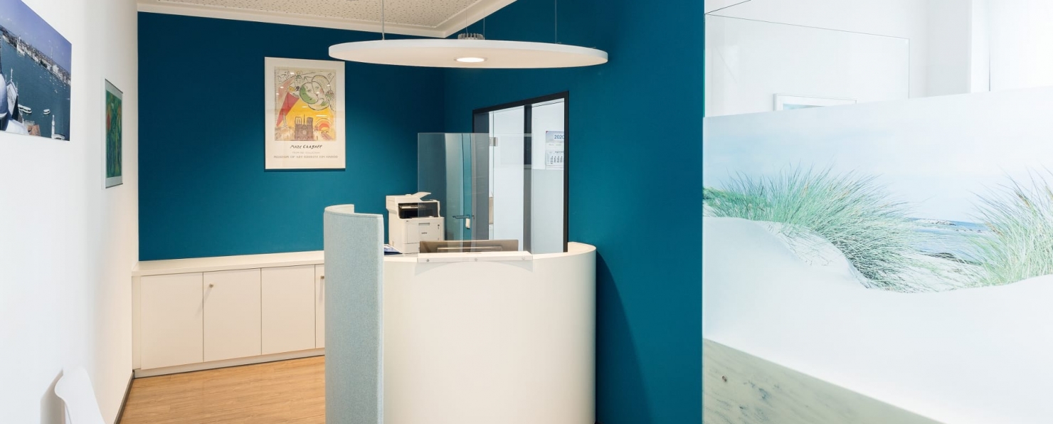 Take a look at our modern practice design and let yourself be convinced by the warm and pleasant design.